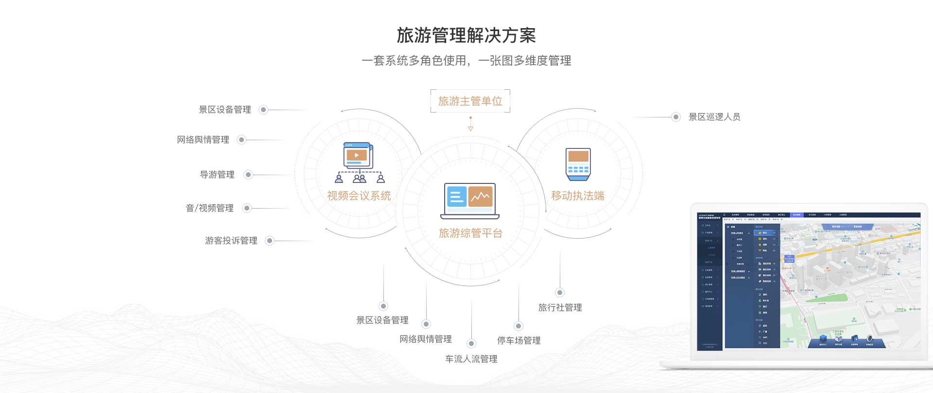 路通物聯是路通視信旗下專注智慧全域旅游領域的技術研發和落地運營公司。是擁有核心技術和自主知識產權并全面落地實施的 智慧全域旅游綜合解決方案供應商。多年來,公司立足市場和國策,依托互聯網、物聯網、大數據、云計算等新興技術,秉承“自 主研發、落地至上”的開發理念完成了“1+3+N”的產品構架,并長期為各省、市、區縣旅游局,旅發委、運營商、集成商提供優質服務。